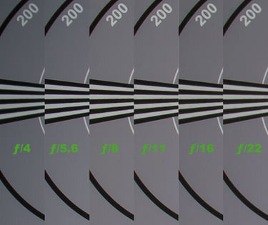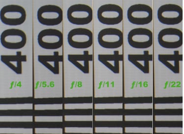 E quindi mi sono messo a distanza minima di fuoco dal chart ed ho inquadrato solo il centro di esso. Quello che puoi vedere in questa immagine è una raccolta sempre dell'angolo alto sinistro delle inquadrature del centro del chart ingrandite del 300% e... wow: si conferma quanto detto nella prova "a tutto chart": una minima caduta d nitidezza a tutta apertura recuperata e mantenuta fedelmente fino ad ƒ/22. Questo significa che, anche a distanze minime, il Laowa 14mm è in grado di restituire dettagli davvero impressionanti.