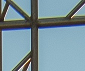 Nella prima foto abbiamo il punto di fuoco sui rami in controluce ad ƒ/8 in pieno controluce (anche se in fase calante): possiamo notare la presenza delle aberrazioni cromatiche facilmente rimovibili. Per quanto riguarda la croce abbiamo gli stessi scatti ed abbiamo il soggetto al centro: anche in questo caso vi sono delle aberrazioni cromatiche ed anche in questo caso non abbiamo problemi di rimozione. Entrambi gli ingrandimenti sono del 300%.